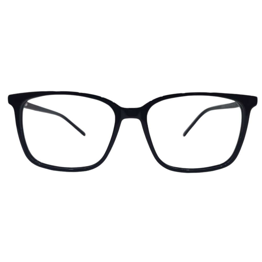 Armazón de pasta en tono negro clásico con acabado brillante, que resalta por su sobriedad y versatilidad. Su diseño rectangular de líneas limpias proyecta un estilo moderno y profesional, ideal para quienes buscan un accesorio elegante que combine con cualquier ocasión. La estructura ligera garantiza comodidad durante el uso diario, mientras que su estética atemporal lo convierte en un básico indispensable. Perfecto para complementar tanto atuendos formales como casuales, aportando un toque refinado y discreto.