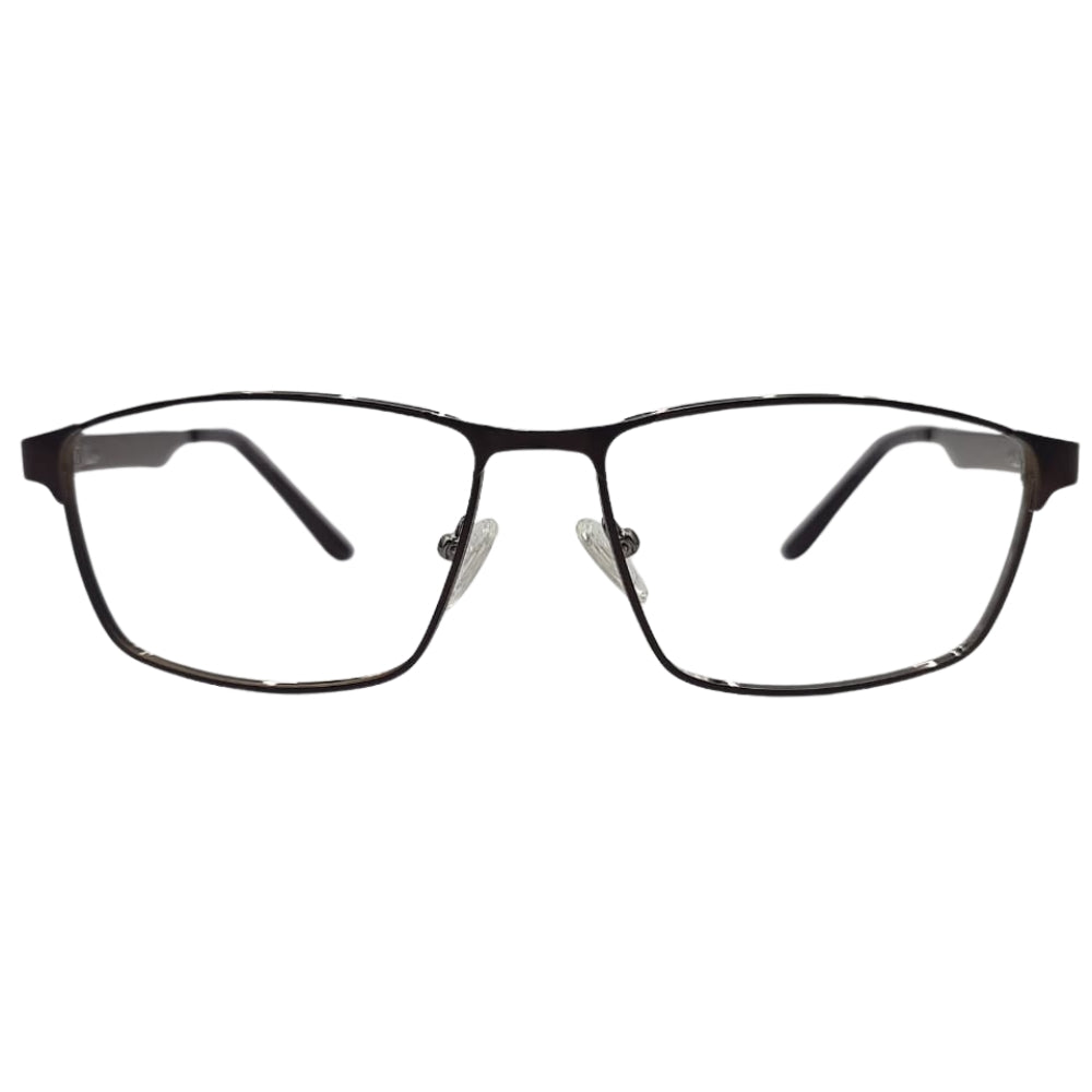Armazón metálico rectangular en color café y negro brillante, con diseño clásico y elegante. Sus varillas delgadas con puntas en pasta y plaquetas ajustables ofrecen comodidad y un ajuste seguro durante todo el día. Ideal para quienes buscan un look moderno y versátil que combina perfectamente con cualquier estilo.