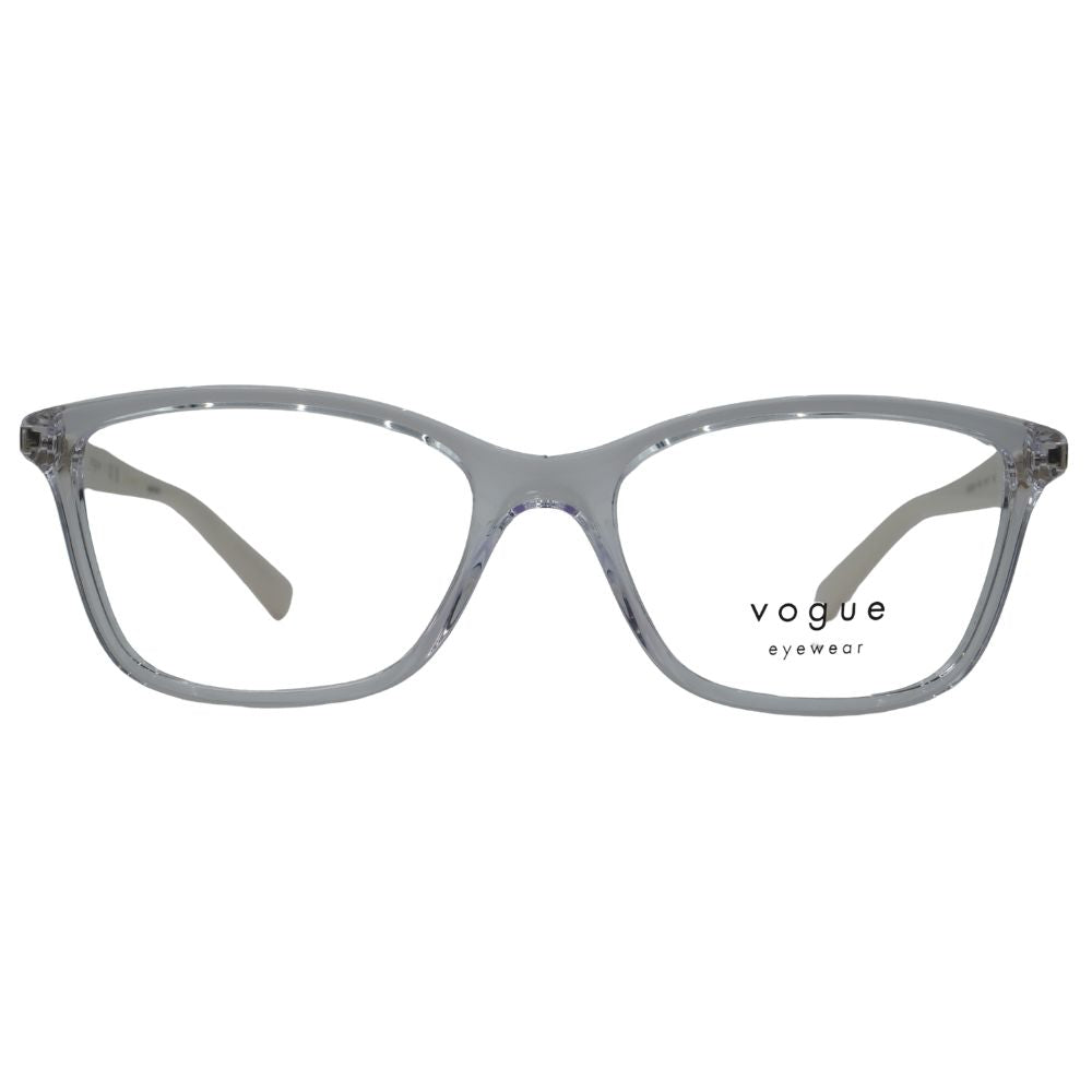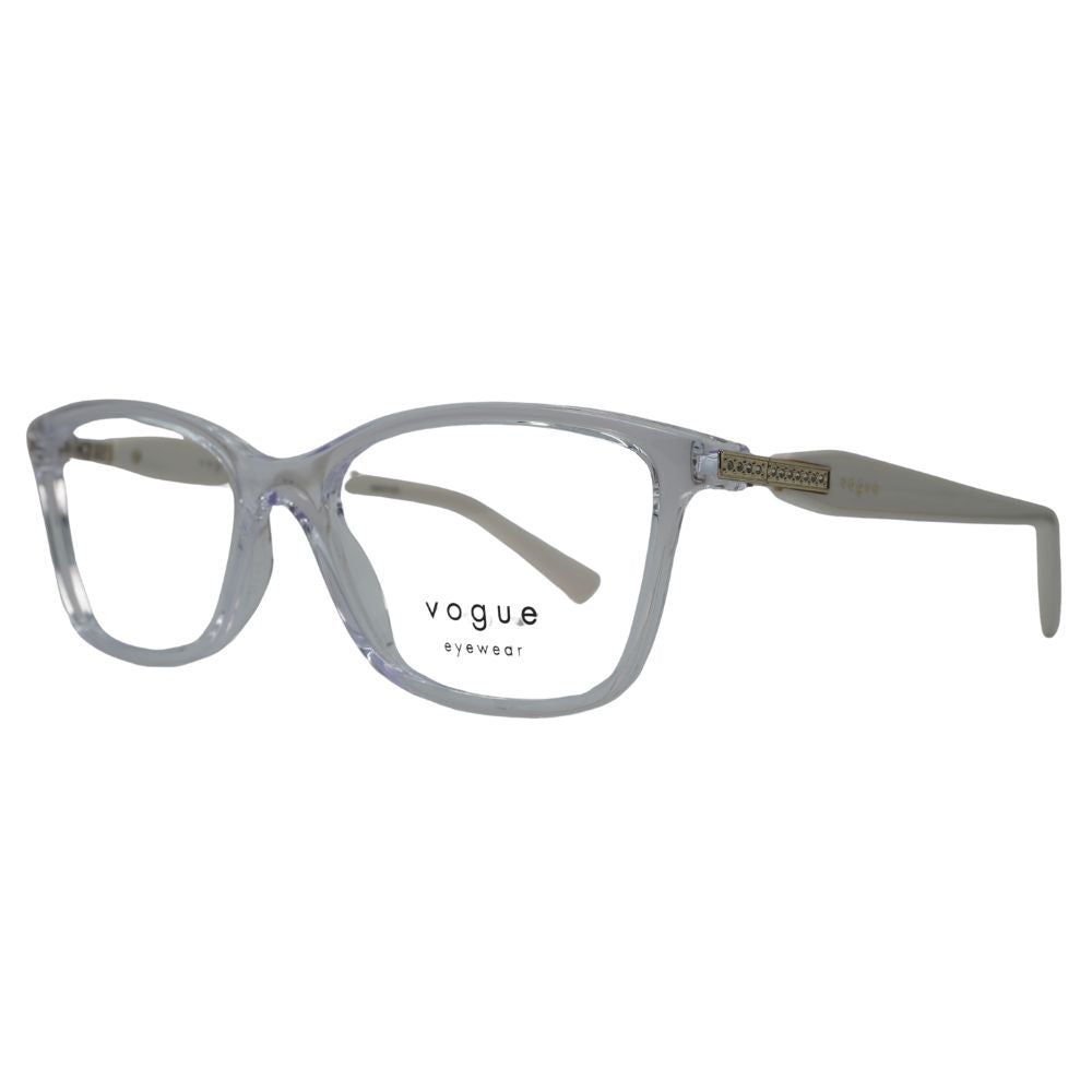 Lentes Vogue de pasta en tono transparente, con un diseño rectangular suavemente estilizado que aporta ligereza visual y modernidad al rostro. Su acabado translúcido realza la luminosidad del material, mientras que la estructura ligera brinda comodidad para uso prolongado. Las varillas en contraste con detalle metálico dorado añaden un toque elegante y distintivo, ideal para un estilo sofisticado y contemporáneo.